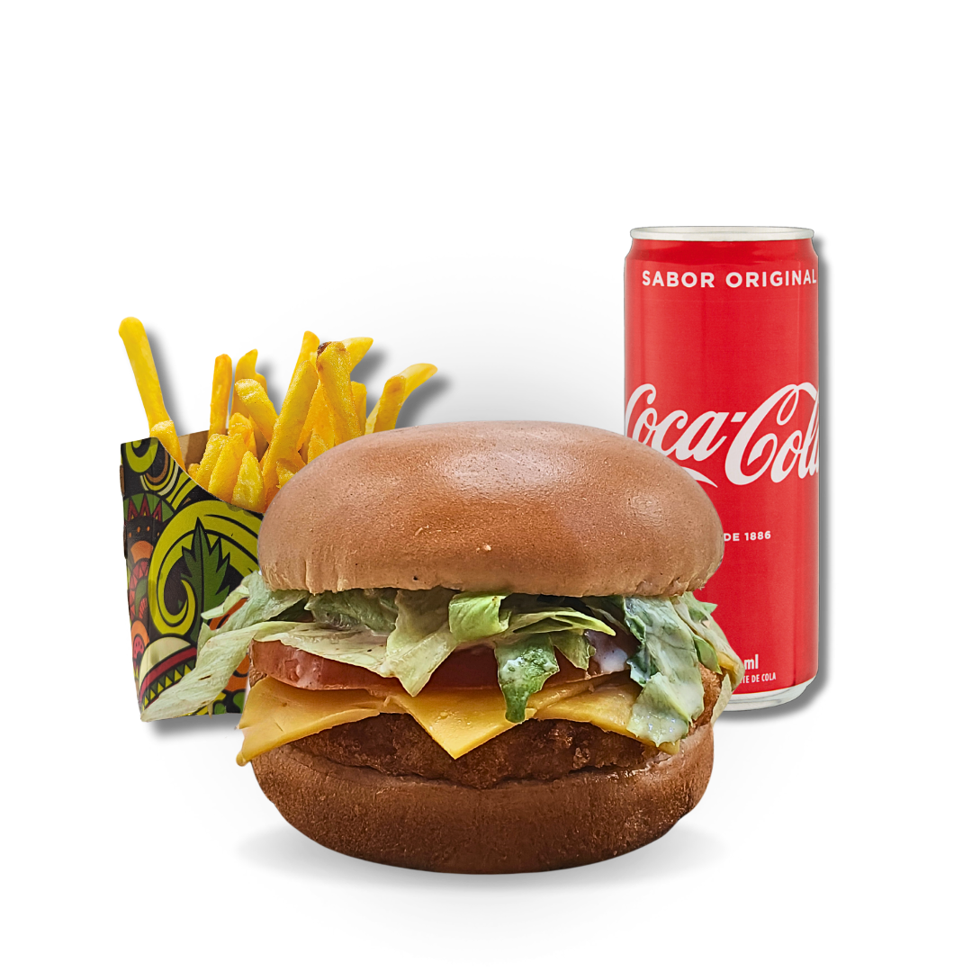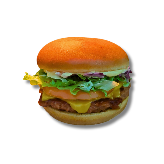 Hambúrguer de 150g, queijo cheddar, acompanhado de alface, tomate, cebola roxa e maionese a escolha.