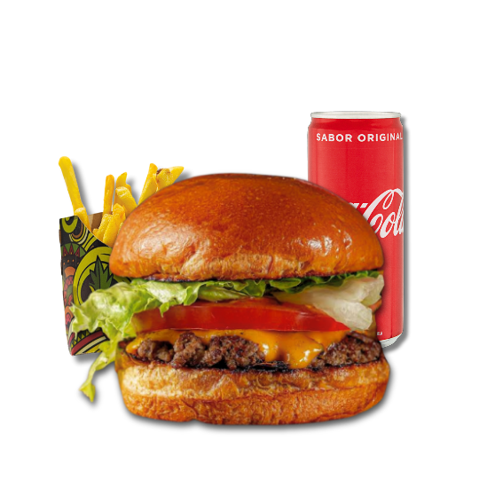 Pão de brioche, smash bovino, queijo cheddar e maionese da casa.